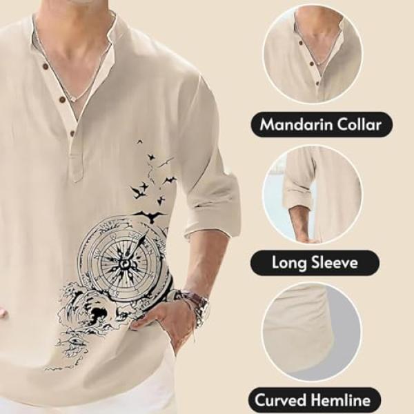 DEELMO Men's Cotton Blend Mandarin Collar Self One Design Full Sleeve Casual Short Kurta
