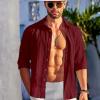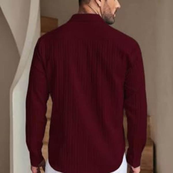 - 【Unique Design】Mens casual shirts feature long sleeve,spread collar, solid color,slight vertical ribbing,relaxed fit,simple and fashion
