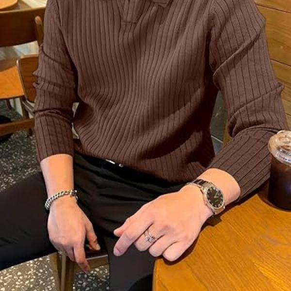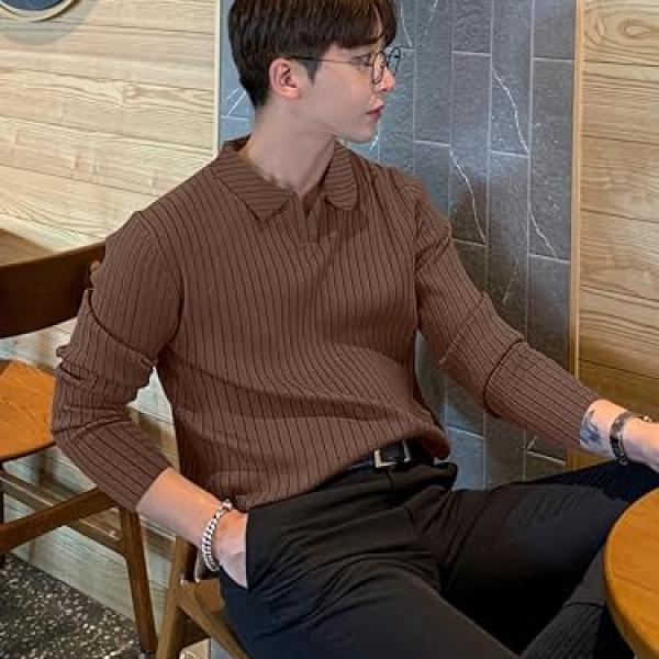 - PREMIUM DESIGN: Stylish ribbed knit polo t-shirt featuring vertical ribbing pattern and classic collar design for a sophisticated look