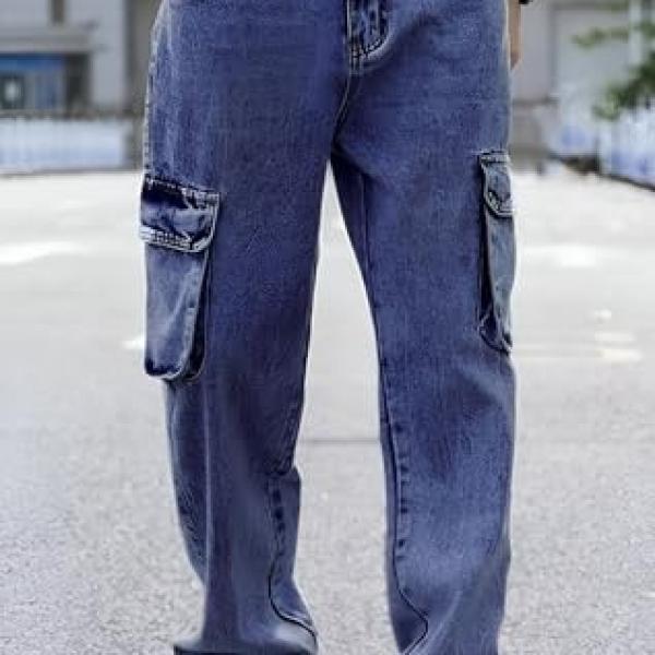 - Denim Material: Durable and classic denim fabric for a timeless look of this Baggy Fit Cargo Jeans for Men.