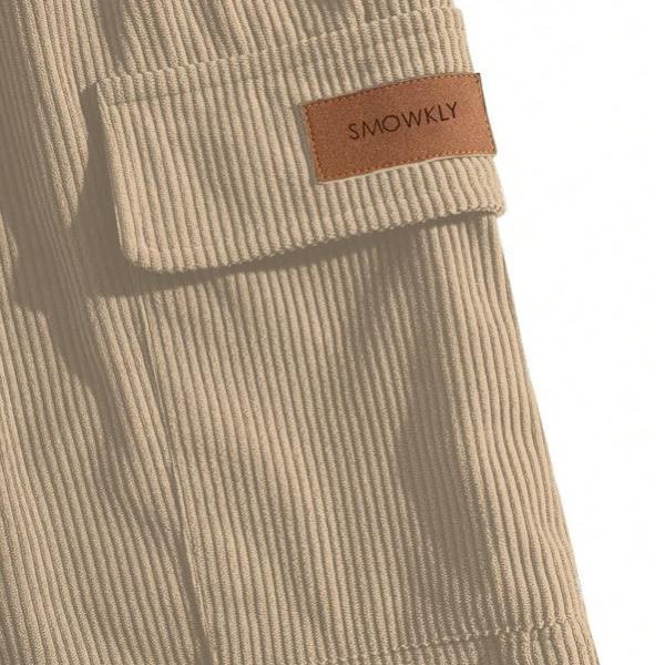 SMOWKLY Authentics Classic Men's Ribbed Polycotton Relaxed Fit Cargo Stretch Shorts || Half Pant with Drawstring