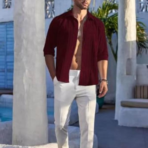 - 【Various Outfits】Men linen shirts could be easy to match with linen shorts/pants, casual pants or shorts to create a simple but fashionable style.