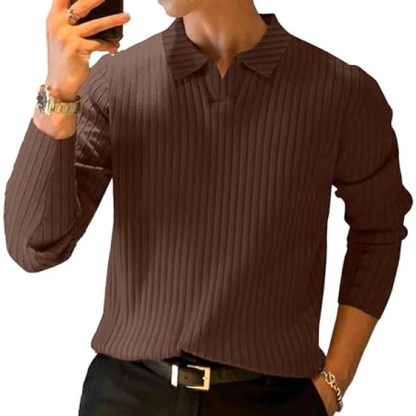 - PREMIUM DESIGN: Stylish ribbed knit polo t-shirt featuring vertical ribbing pattern and classic collar design for a sophisticated look