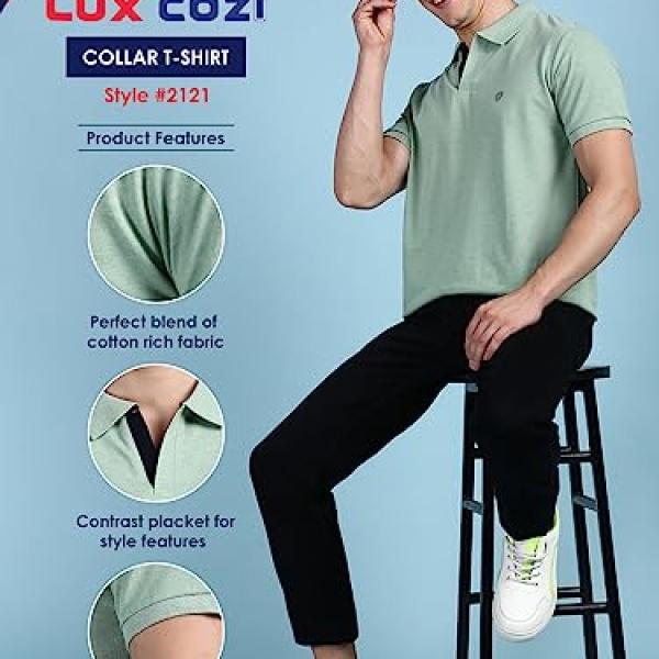 - Lux Cozi Men's Regular Fit Polo Neck Half Sleeve Solid Casual T-shirt is a stylish and comfortable choice for casual wear.