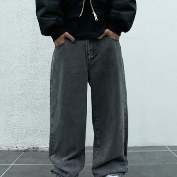 The Jeans is Mid to High rise waist, extra loose baggy fit, korean cute influencer style.