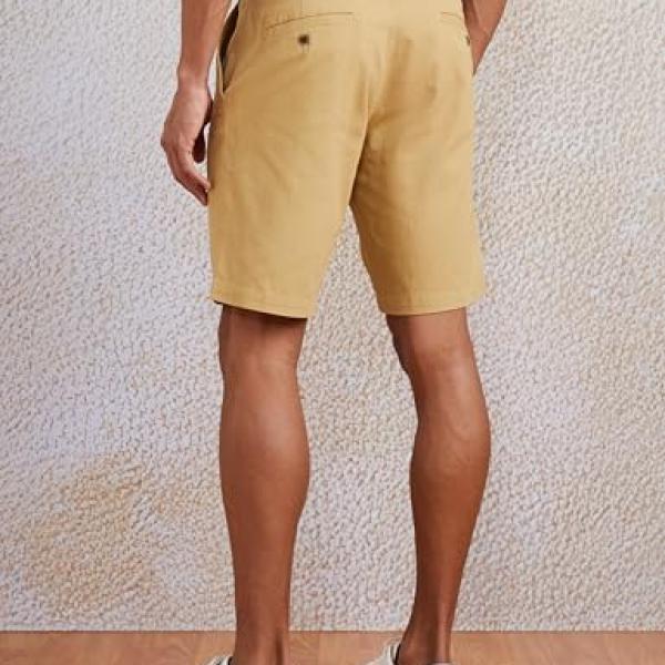- PRODUCT DETAILS: Flat-front chino shorts with side slant pockets, back welt pockets and zip fly with button closure.